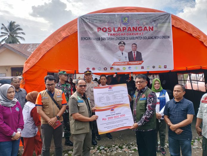 BOLMONG, Update24 – Badan Nasional Penanggulangan Bencana (BNPB) menyerahkan bantuan Dana Siap Pakai (DSP) sebesar Rp200 Juta dan dukungan logistik untuk Pemerintah Kabupaten (Pemkab) Bolaang Mongondow (Bolmong), Sabtu (29/6/2024).