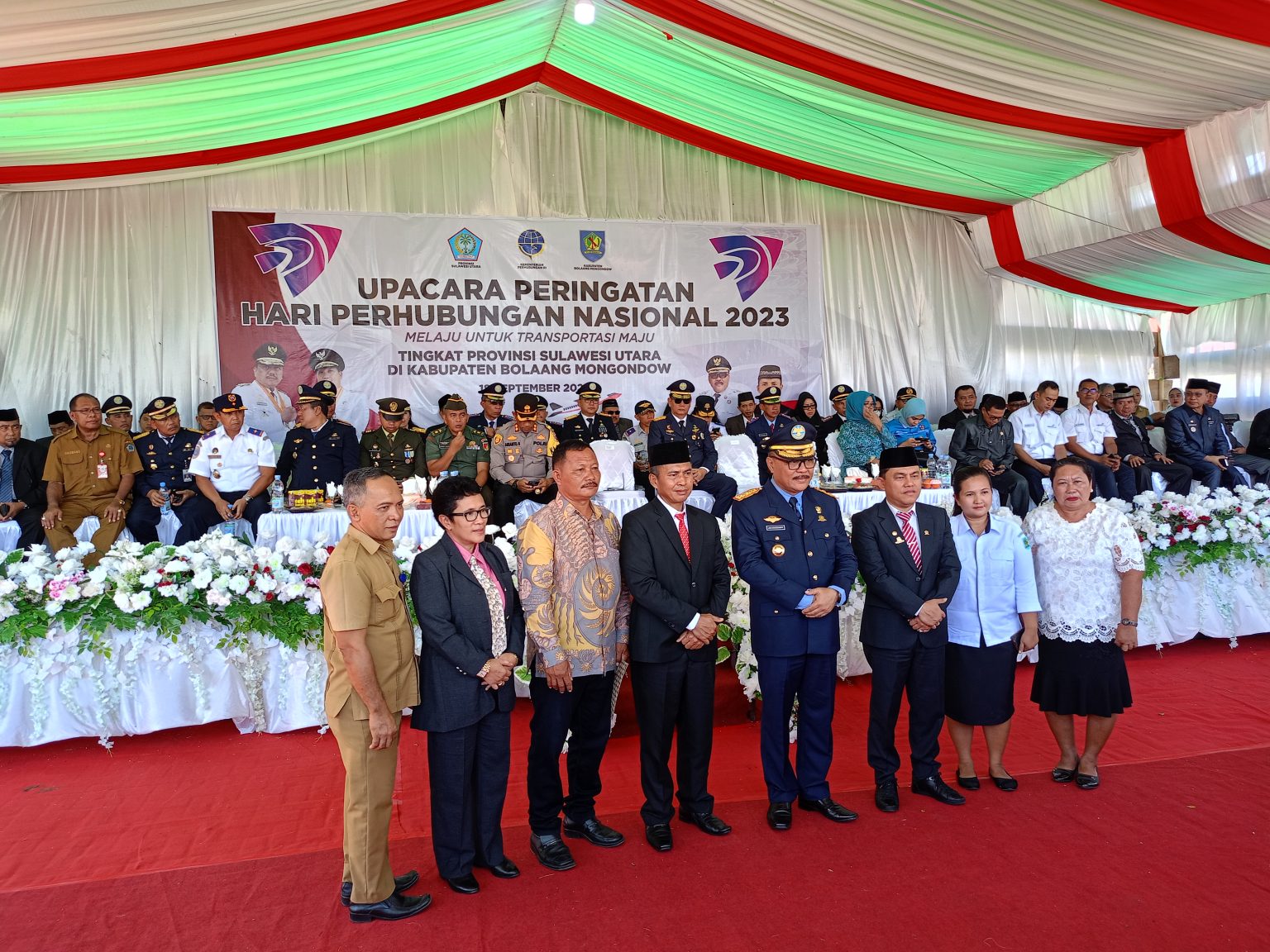 Upacara yang di hadiri seluruh insan trasnportasi dari Dinas Perhubungan se Sulut ini juga di hadiri Forkopimda, Ketua DPRD Bolmong, Sekretaris Daerah Tahlis Gallang SIP MM, para Asisten, staf ahli, para pimpinan OPD, Camat dan para ASN. (Hen/Adve)