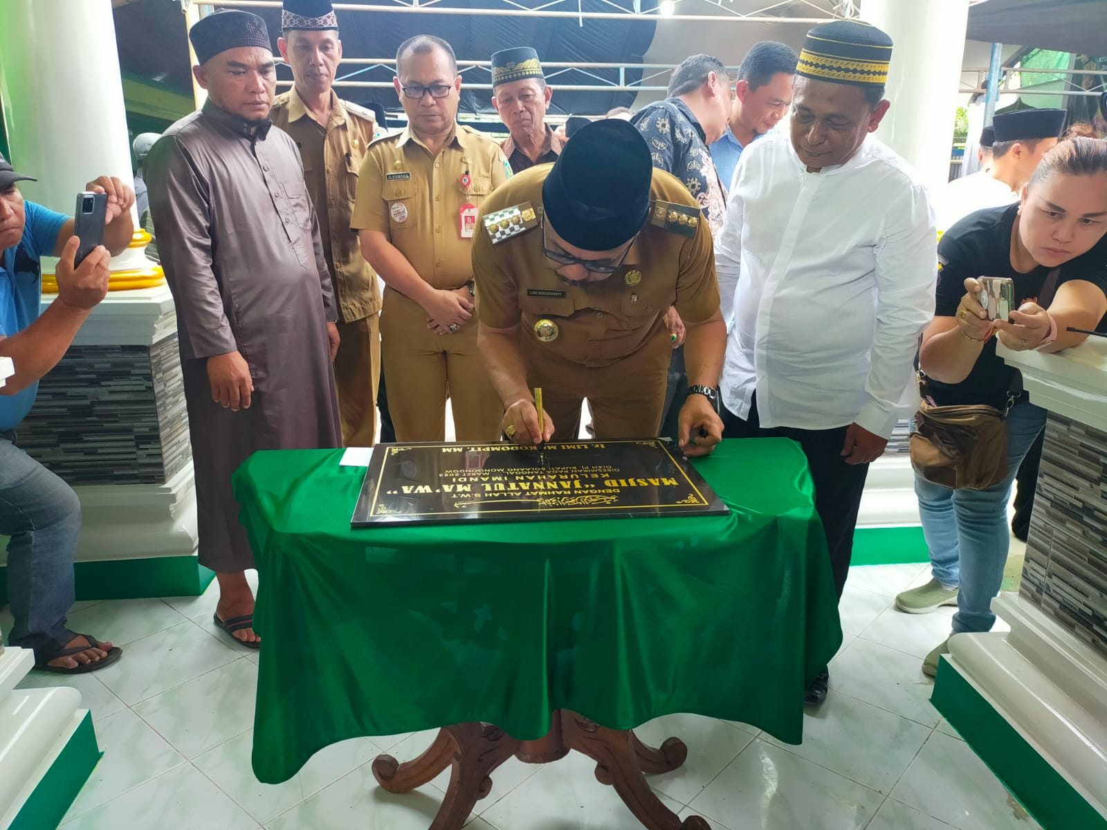 Bupati Limi menandatangani prasasti peresmian masjid.