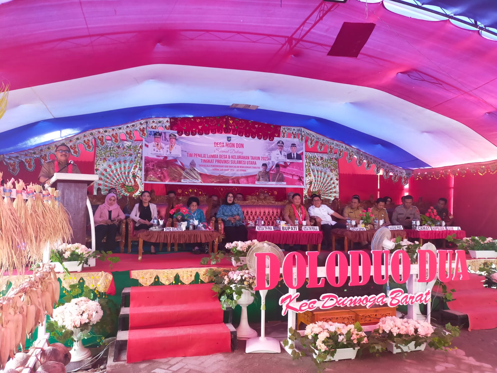 Bupati pada kesempatan itu, menyambut hangat kedatangan tim penilai di Desa Doloduo II, yang dipimpin langsung Ketua tim penilai lomba desa dan kelurahan tingkat provinsi, Dr Jemmi Kumendong MSi beserta jajarannya.