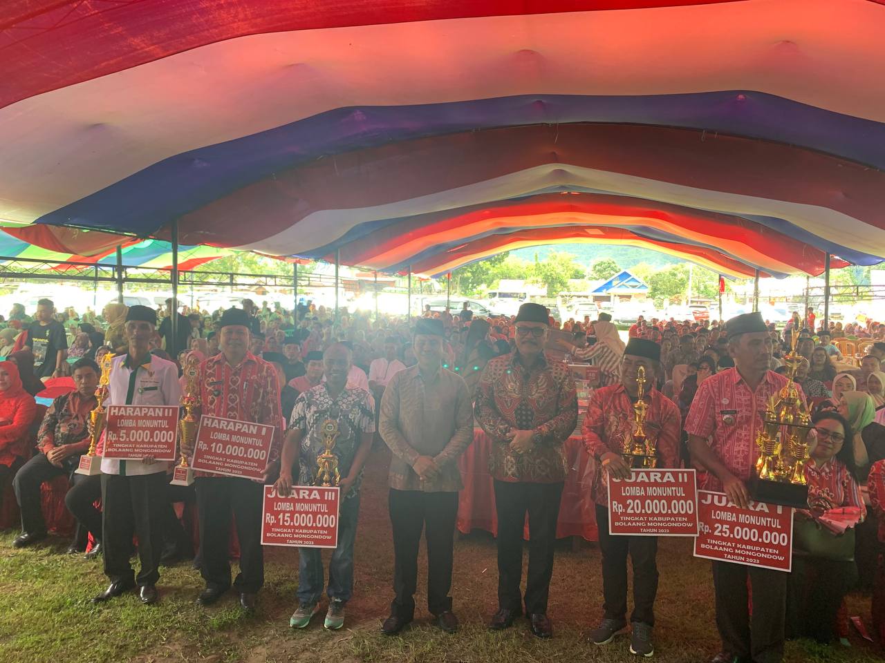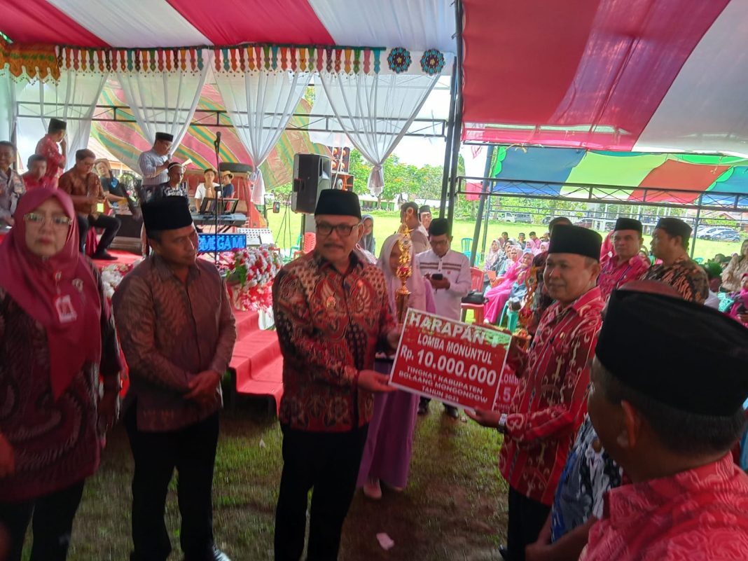 Diketahui, usai menyampaikan sambutan, dilanjutkan dengan penyerahan hadiah kepada para pemenang lomba monuntul. Hadiah monuntul yang diberikan berupa tropy dan uang tunai. Pada lomba tersebut, Desa Otam Barat berhasil menjadi pemenang atau juara satu, dengan hadiah uang tunai sebesar Rp25 juta. (Han/Adve)