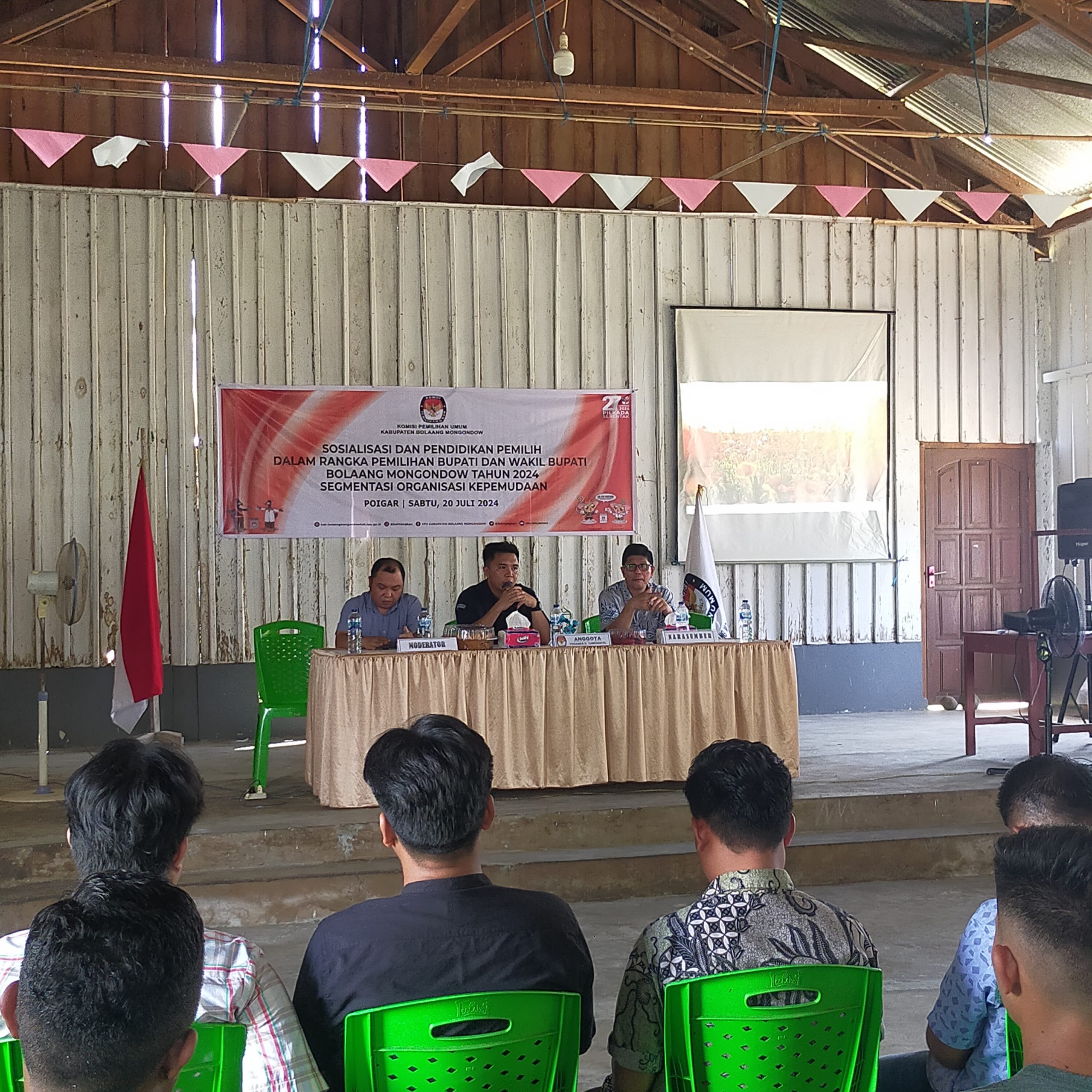 Kegiatan inipun dibuka langsung Komisioner KPU Bolmong Yohanes D Tumengkol. Pada kesempatan itu Yohanes mengatakan, kegiatan ini segmentasinya lebih ke organisasi kepemudaan. Dimana, sosialisasi ini lebih ke peran pemuda untuk turut berpartisipasi dan mensukseskan Pilkada serentak di Sulut dan khususnya di Kabupaten Bolmong.