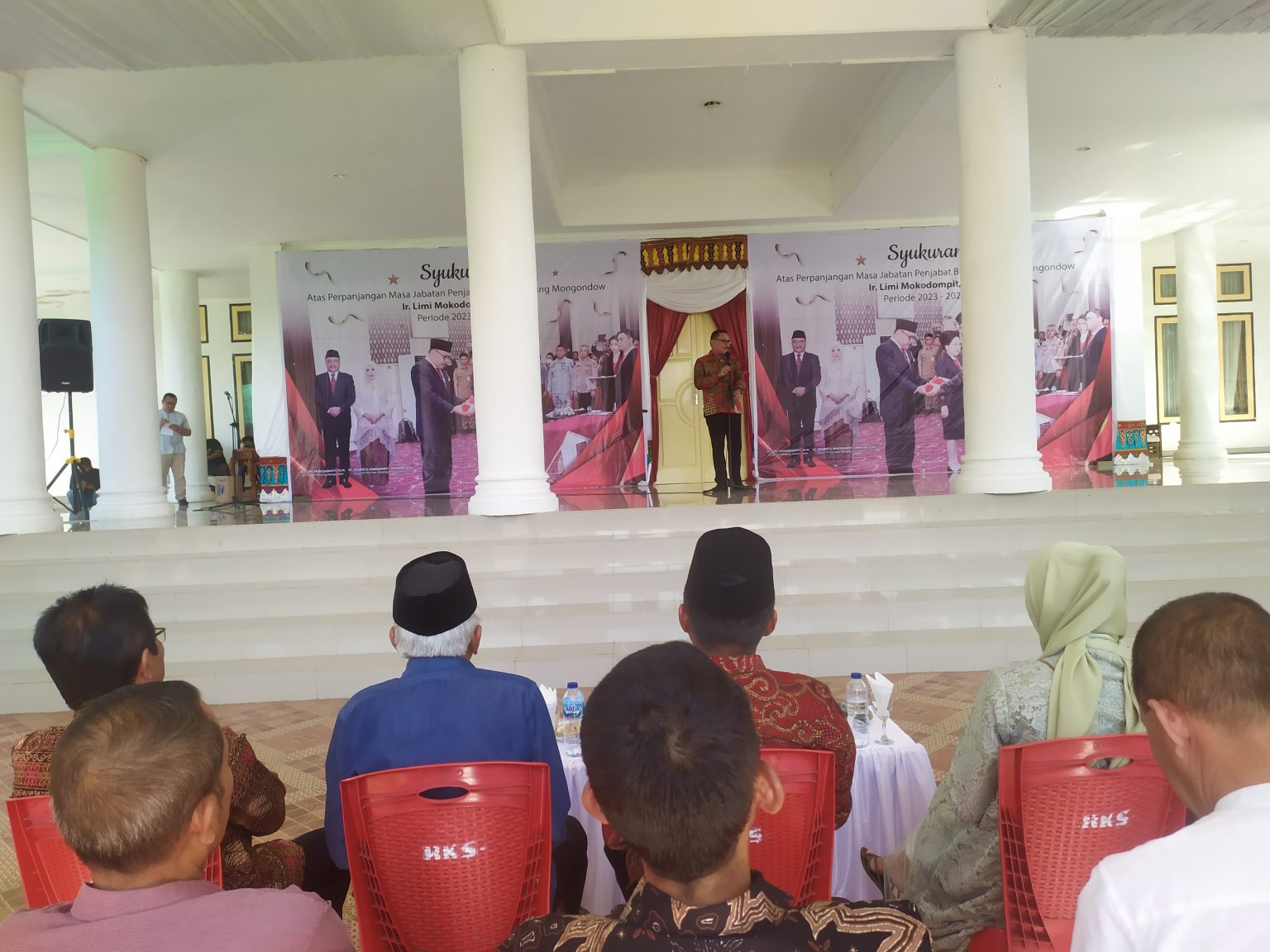 Setelah resmi menjabat kembali, Jumat (26/5/2023) siang tadi, Pemerintah Kabupaten (Pemkab) Bolmong menggelar doa syukuran di rumah dinas (Rudis) Bupati, Kecamatan Lolak.