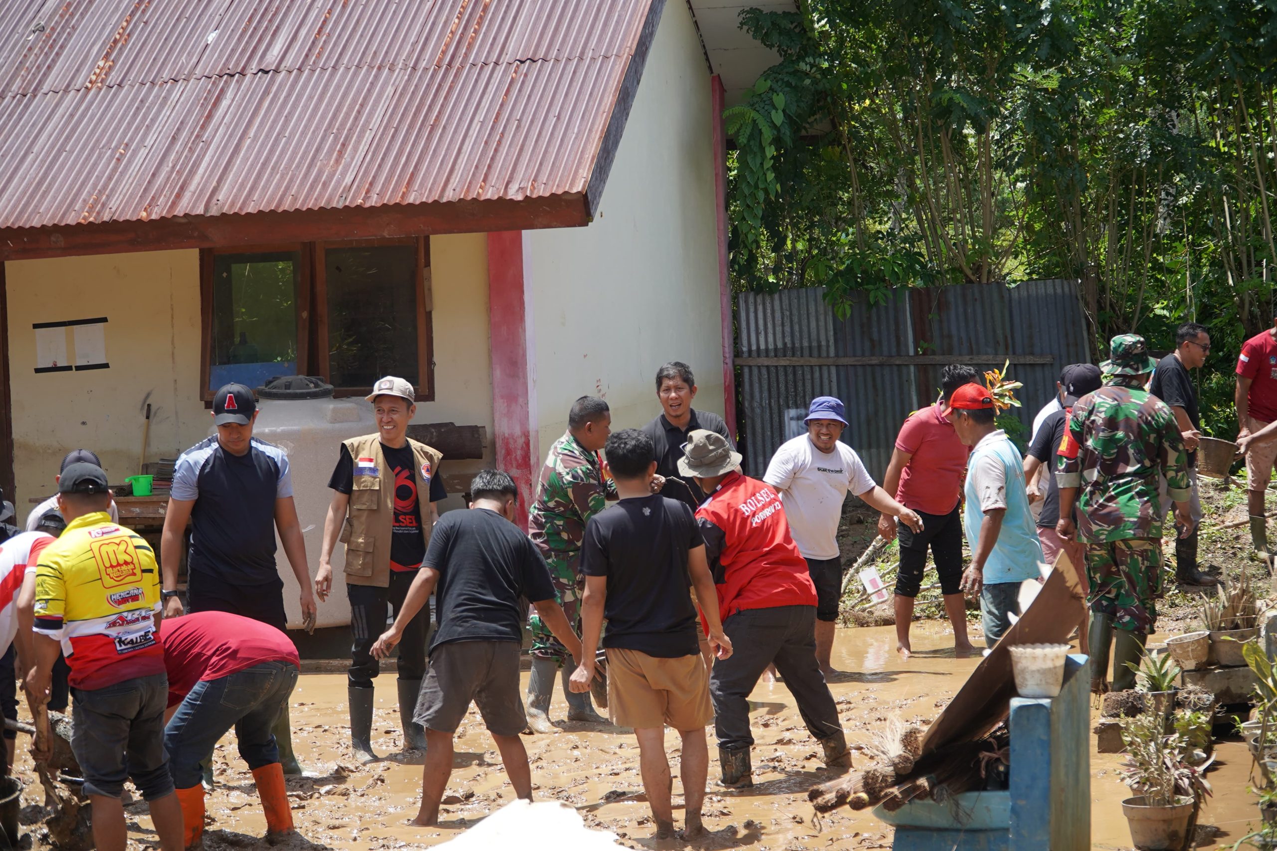 Tidak hanya turun langsung membersihkan lumpur dirumah-rumah warga dan fasilitas umum, namun Bupati dan OPD juga ikut membawa bantuan kebutuhan pokok yang dibutuhkan masyarakat.