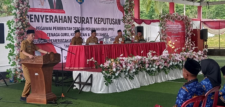 “SK kalian terhitung mulai 1 Oktober 2025 ini, dan saat ini pihak BKPSDM tengah memperoses data kalian ke KemenPAN-RB. Jadi diharapkan juga kerjasamanya dari kalian (P3K),” kata Bupati.