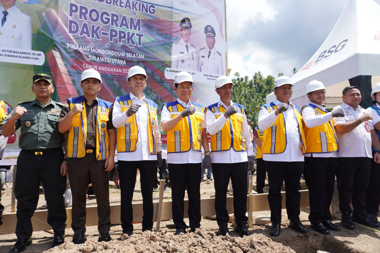 BOLSEL, Update24 – Wakil Gubernur Sulut Victor Mailangkay, didampingi Bupati Bolaang Mongondow Selatan (Bolsel) H Iskandar Kamaru SPt dan Wabup Deddy Abdul Hamid, menghadiri peletakan batu pertama pelaksanaan pengentasan permukiman kumuh terpadu (PPKT) tahun 2025, sekaligus pembangunan rumah bantuan dari (PT.SMF).