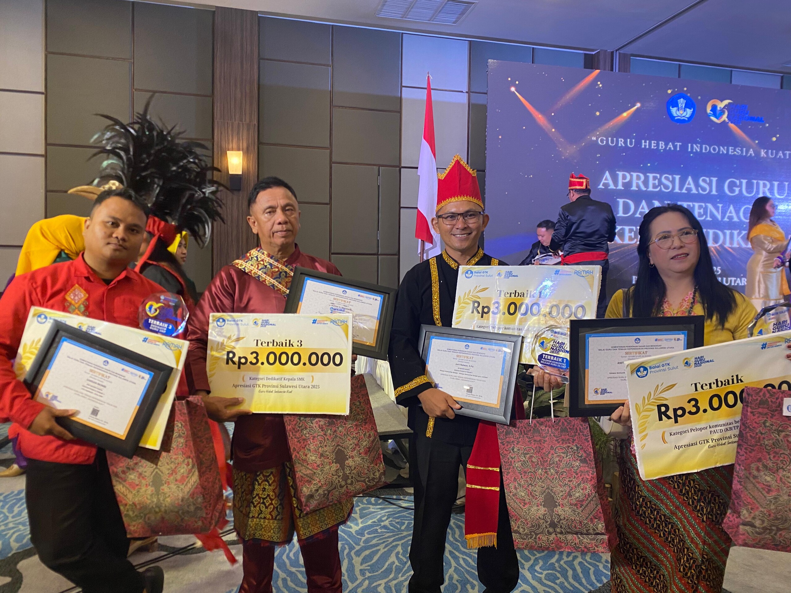 Terbukti, sejumlah guru Bolsel berhasil meraih Tiga penghargaan pada ajang Apresiasi penghargaan Guru dan Tenaga Kependidikan (GTK), yang digelar BGTK Sulut, di Tateli Resort and Convention, Manado, Sabtu (8/11/2025).