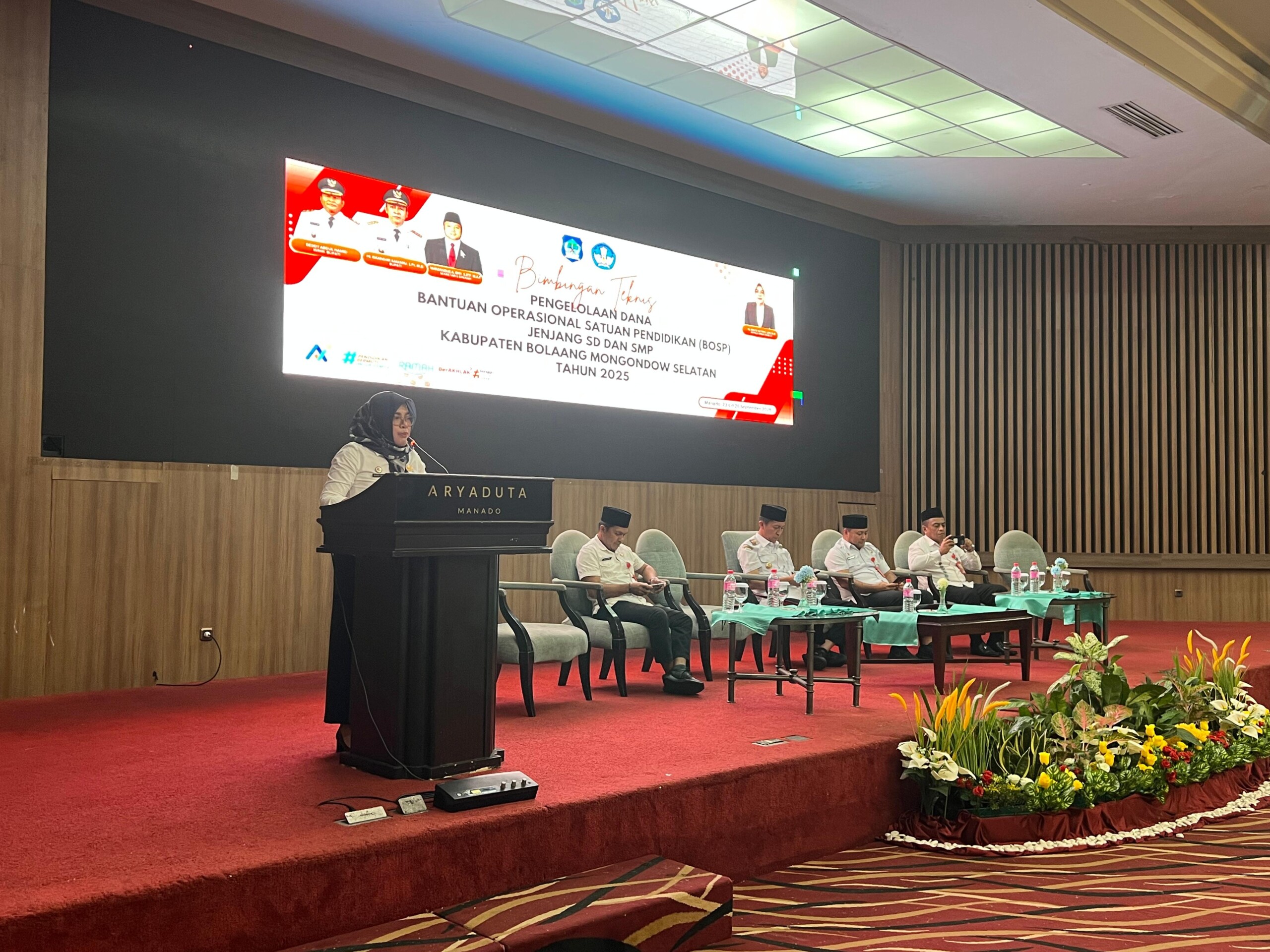 BOLSEL, Update24 – Dinas Pendidikan dan Kebudayaan (Dikbud) Bolaang Mongondow Selatan (Bolsel), menggelar Bimbingan Teknis (Bimtek) Pengelolaan Dana Bantuan Operasional Satuan Pendidikan (BOSP) jenjang SD dan SMP Tahun 2025, di Hotel Aryaduta Manado, mulai 23 sampai 26 September 2025.