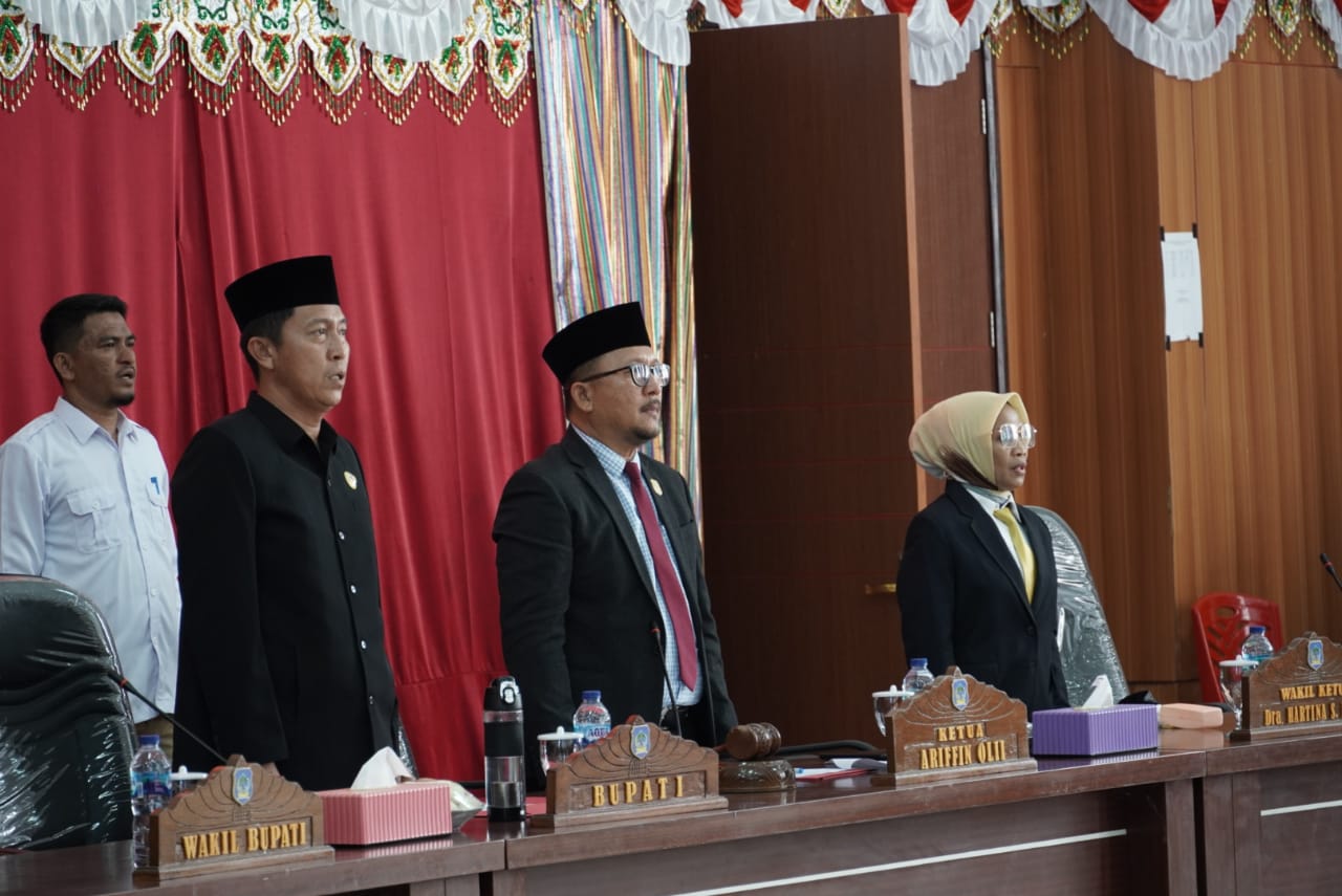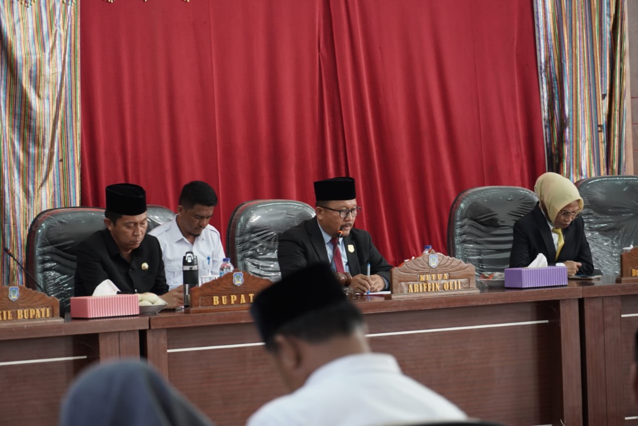 DEWAN Perwakilan Rakyat Daerah (DRPD) Bolaang Mongondow Selatan (Bolsel) menggelar paripurna tahap I Rancangan Kebijakan Umum Anggaran (KUA) Rancangan Prioritas Platfon Anggaran Sementara (KUA-PPAS) 2023, yang diusulkan pemerintah kabupaten (Pemkab), Rabu siang tadi. Paripurna ini dipimpin langsung Ketua DPRD Bolsel Ir Arifin Olii dan Wakil Ketua Dra Hartina Badu. Hadir pada acara tersebut Bupati H Iskandar Kamaru SPt, para anggota DPRD, Sekda Marzanzius Arvan Ohy SSTP MAP, para Asisten Sekda, Staf Ahli, pimpinan OPD beserta jajaran ASN.