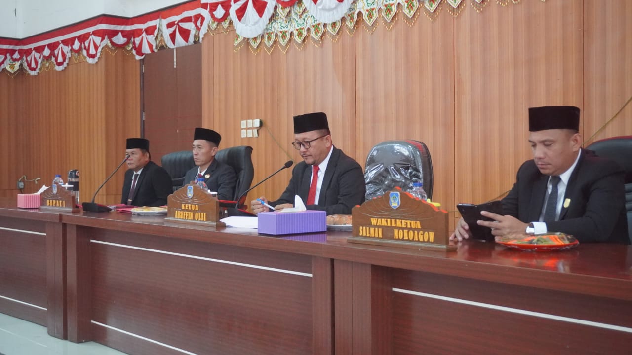 Paripurna dipimpin Ketua DPRD Bolsel Ir Arifin Olii, didampingi Wakil Ketua Salman Mokoagow dan turut dihadiri Bupati H Iskandar Kamaru SPt MSi bersama Wabup Deddy Abdul Hamid.