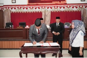 Wabup dan pimpinan DPRD Bolsel menandatangani berita acara pelaksanaan paripurna tahap II LKPJ Kada TA 2022.