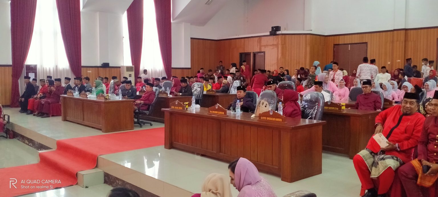 Paripurna ini dipimpin langsung Ketua DPRD Ir Ariffin Olii, didampingi kedua Wakil Ketua dan diikuti seluruh Anggota Legislatif. Hadir pula Bupati H Iskandar Kamaru SPt MSi, Wakil Bupati (Wabup) Deddy Abdul Hamid, Sekretaris Daerah (Sekda) Marzanzius Arvan Ohy SSTP MAP serta pejabat pemerintah daerah, yang mengenakan pakaian adat.