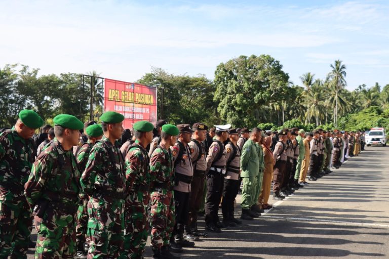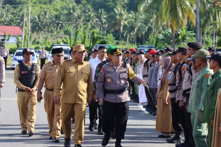 BOLSEL, Update24 Wakil Bupati (Wabup) Bolaang Mongondow Selatan (Bolsel) Deddy Abdul Hamid, memimpin Apel Gelar Pasukan dalam rangka pengamanan TPS, pada Pemilihan Umum (Pemilu) 2024, yang berlangsung di Halaman Mapolres Bolsel, Senin (5/2/2024).
