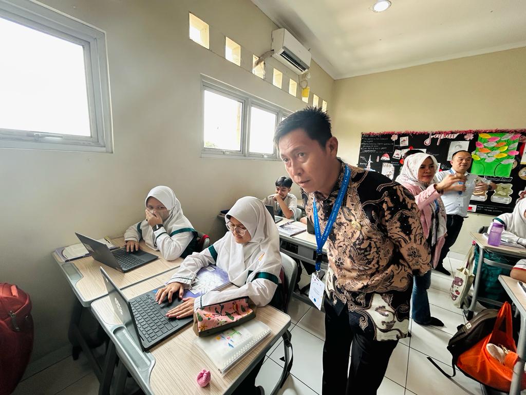 Kunjungan ke sekolah tersebut, bertujuan untuk melihat langsung praktik di bidang IT, terutama penggunaan teknologi pada pembelajaran di sekolah.