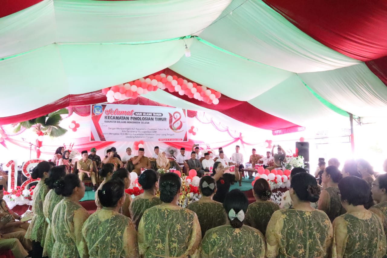 Bolaang Uki, Update24 – Wakil Bupati (Wabup) Bolaang Mongondow Selatan (Bolsel) Deddy Abdul Hamid, didampingi Sekretarus TP-PKK Rosdiana Abdul Hamid–Lapatola, menghadiri peringatan Hari Ulang Tahun (HUT) ke-18 Kecamatan Pinolosian Timur (Pintim).